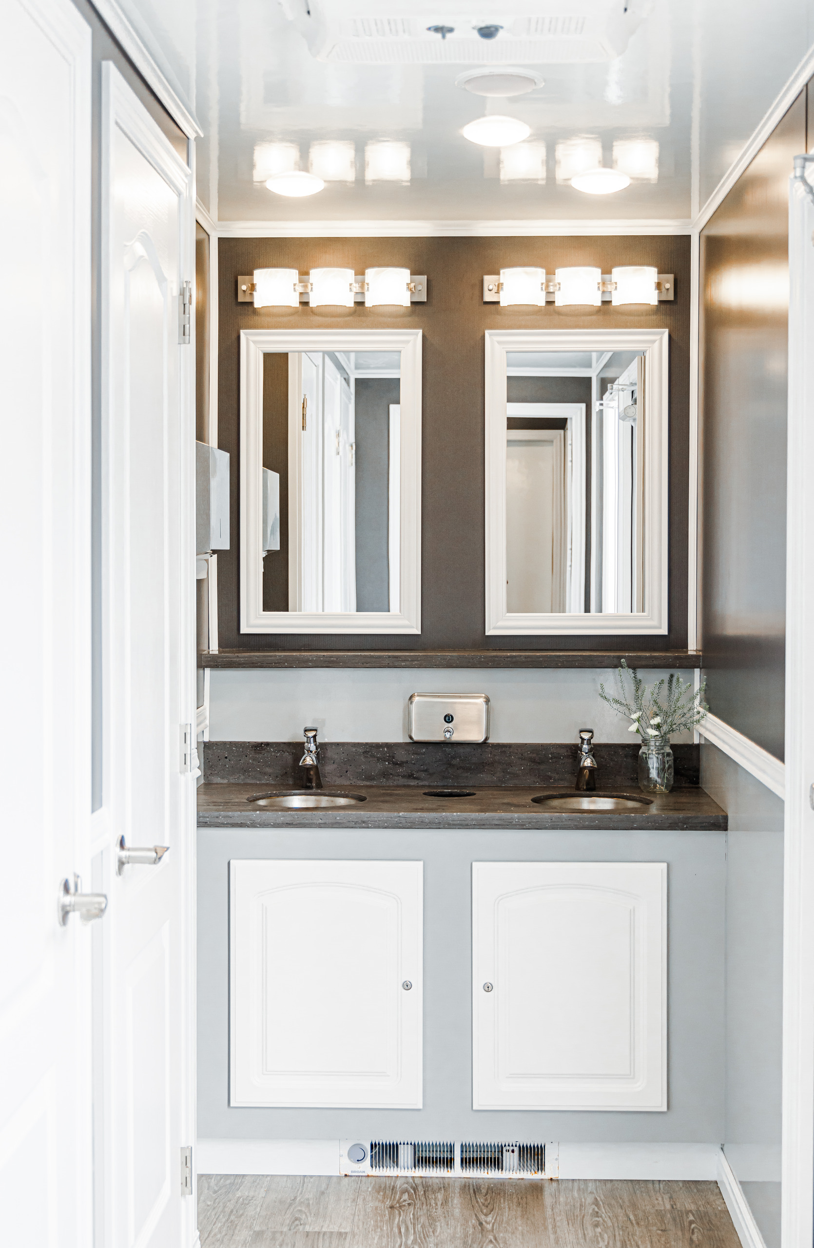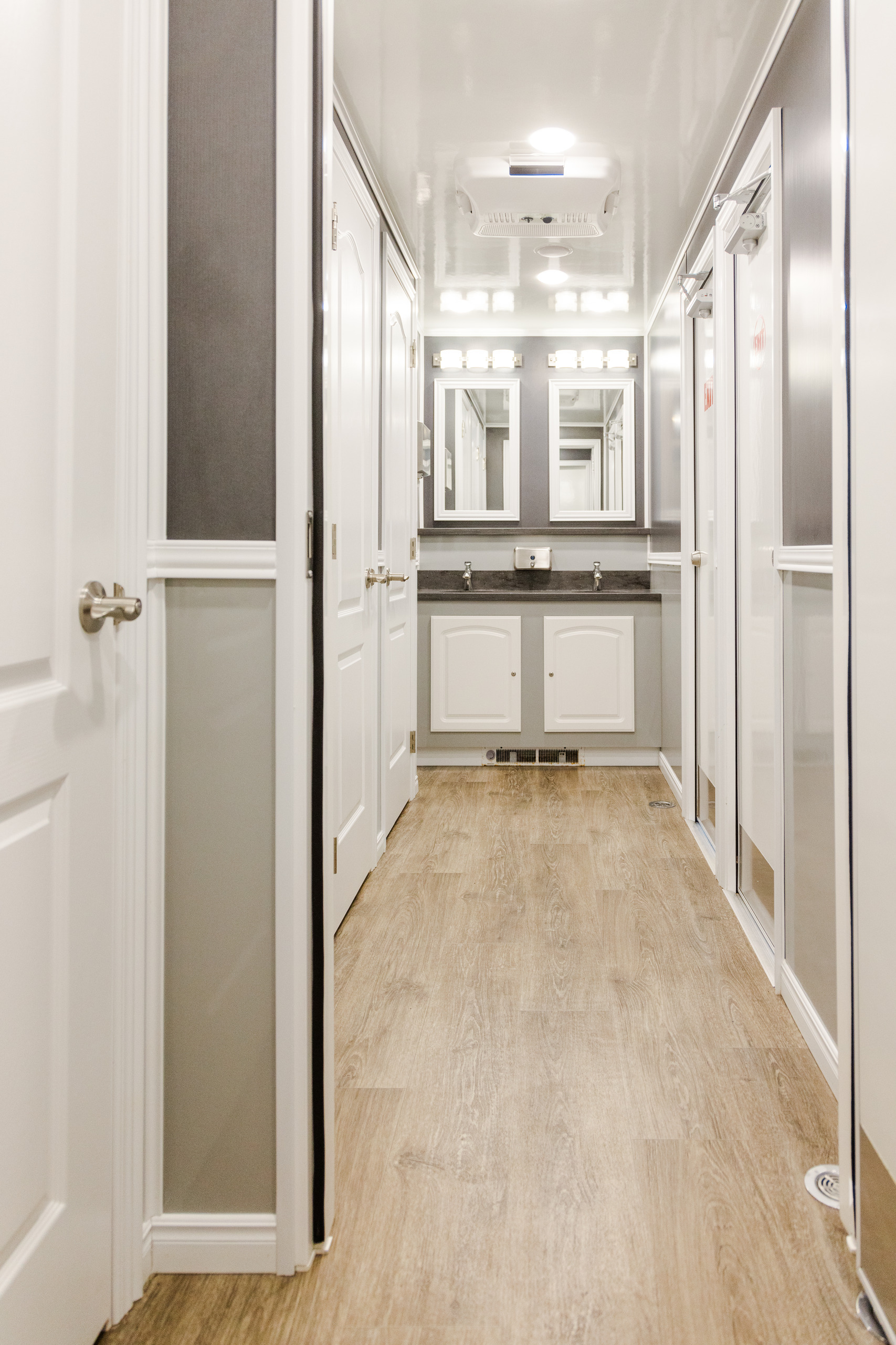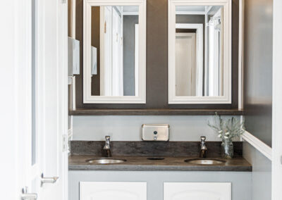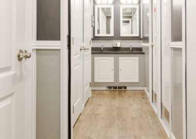The 9 Stall Flex Restroom Trailer provides versatile configurations with either nine or ten stalls, offering flexibility for different event sizes. Its comprehensive design ensures ample facilities and comfort for diverse needs.